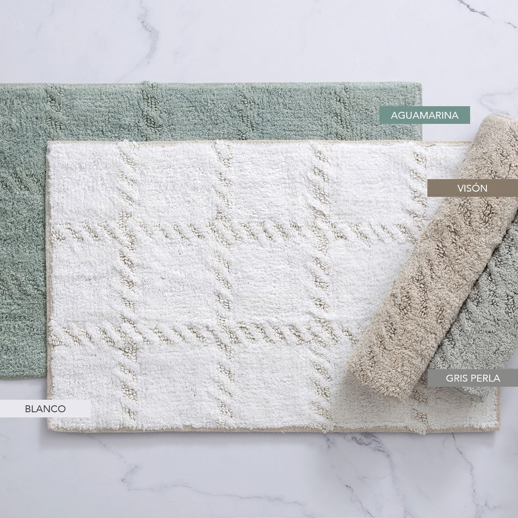 Renová tu baño con la alfombra de baño jacquard de la Línea Block de Jean Cartier.