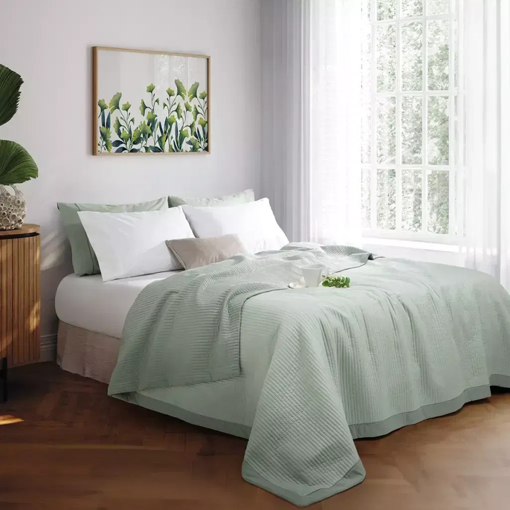 Su matelaseado rayado con un delicado marco a tono crea un efecto visual moderno y sofisticado, ideal para renovar tu cama con un toque distinguido.